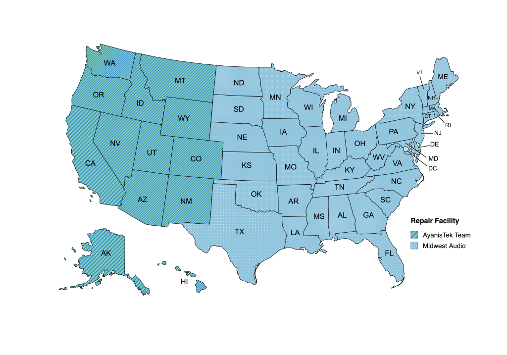 -All warranty repair work is done at one of two Authorized Service Centers, based on the origin of repair